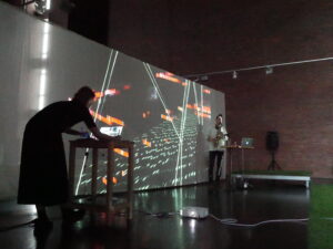 occupies a singular position at the intersection of improvisational sound, generative media, and material-digital hybridity. Unlike many experimental audiovisual projects, where pre-programmed systems dominate, they foreground live improvisation and gestural responsiveness as central drivers. Their performances are emergent systems, where acoustic instruments, live electronics, generative 3D visuals, and tangible materials, sensor-equipped objects, drawings, and wearable artifacts, coalesce in real time, creating immersive, unpredictable, and tactile experiences.